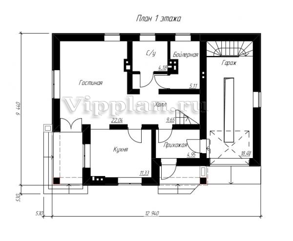 | Размеры дома: | 9.44м×12.94м |