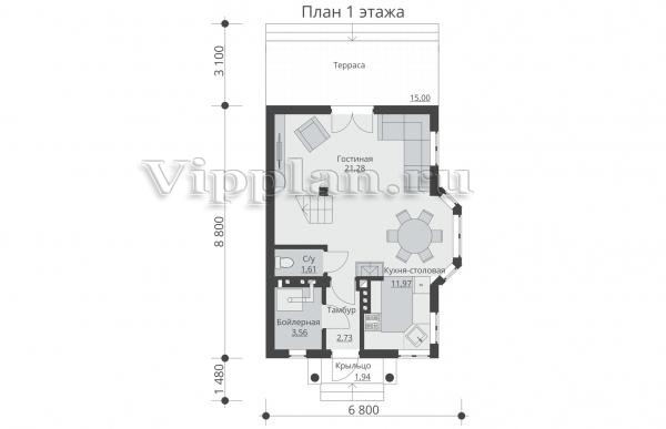| Размеры дома: | 8.8м×6.8м |