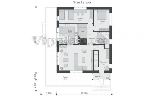 | Размеры дома: | 14.54м×10.98м |