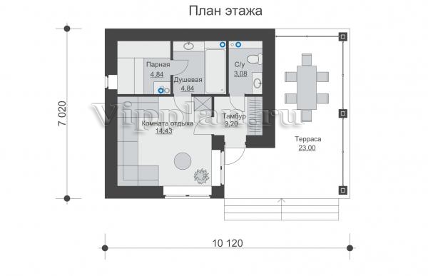 | Размеры дома: | 10.12м×7.02м |