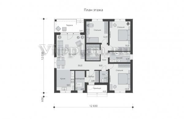 | Размеры дома: | 12.03м×12.83м |