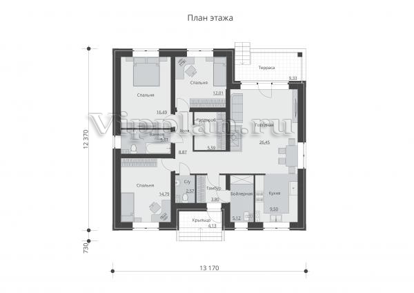 | Размеры дома: | 12.37м×13.17м |